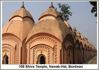 Nine towers, at two levels, border the central edifice. The first level houses four towers, called raths. The other five raths are built on the higher level. The deity has 18 hands. Durga puja is the best time to visit this landmark.Just seven km from the town, Nababhat is a must-visit. A compound containing 109 identical hut-shaped Shiva temples is the chief attraction. The temples were built by Maharani Bishan Kumari in 1788, after a personal crisis. A similar set of 108 Shiva temples can be seen at Ambika Kalna, in the same district.The temples, built around a large pond, are typical aatchala structures. None of them is decorated with terracotta carvings.