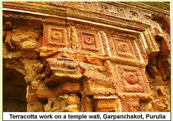 Almost all temples inside the fort are reduced to rubble. Two of them have just got grounded. From the construction style, it is believed that these were not built in the same era. The oldest temple is built of sandstone, while others are made of laterite. In the same periphery one finds several ruined temples, along with a watch-tower. Outside the fort, a small temple is found where a few terracotta panels still exist. When Beglar explored this place, he found a series of temples made with huge domes and arches. It is believed that those temples were founded by Raja Raghunath, the son of Bishnupur king Veer Hambir. However, these no longer exist.