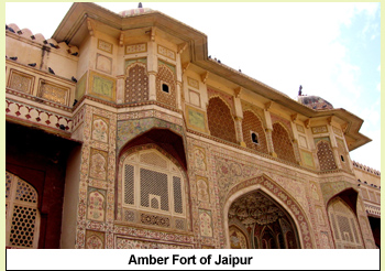 Amber fort still stands in a majestic style over a hill top. A feast for anyone who values history, Amber fort is a gem of its own kind. Started in the hand of Man Singh the commander of Emperor Akbar in 1592 the fort is built of red and white sand stone very skillfully blended and very artistically decorated. Series of gates and cobbled stone path lead to the pavilion and palaces. The grandeur of this fort is so majestic that it is still used as back drop of many historical movies.