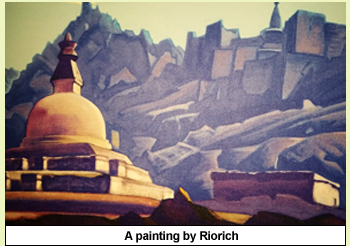 Rabindranath Tagore was so impressed by the paintings of Nicholas and his son Svetoslav Roerich who later on married and settled with Devika Rani the first super heroine of Indian silver screen that he wrote to them “Your pictures profoundly moved me. They made me realize that truth is infinite.When I tried to find words to describe to myself what were the ideas which your pictures suggested, I failed. It was because the language of words can only express a particular aspect of truth. When one art can fully be expressed by another, it is a failure. Your pictures are distinct and yet are not definable by words – Your art is jealous of its independence because it is great.”