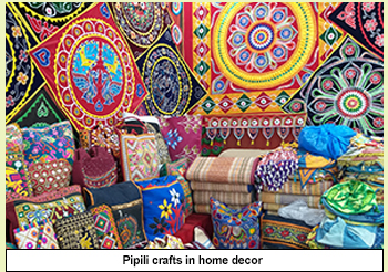 Breaking it’s barrier of being a religious décor it started influencing human life as an attractive show piece to decorate home and community area. It’s shadow started engulfing various commodities of day to day life. Today the craft of Pipili is applied in designing of handbag, garden umbrella, party decorative, pillow covers, purse, wall hanging, lamp shade, cushion cover and many more.